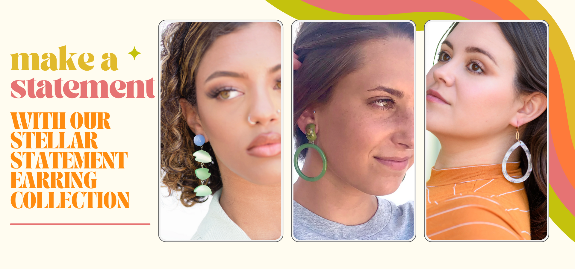 Our Megan Hoop Earrings are the perfect pick heading into Fall! With their retro 80's vibes and their detailed marbling, each hoop is reminiscent of lowing marble or a semi-precious stone, only super light-weight and set with surgical steel.