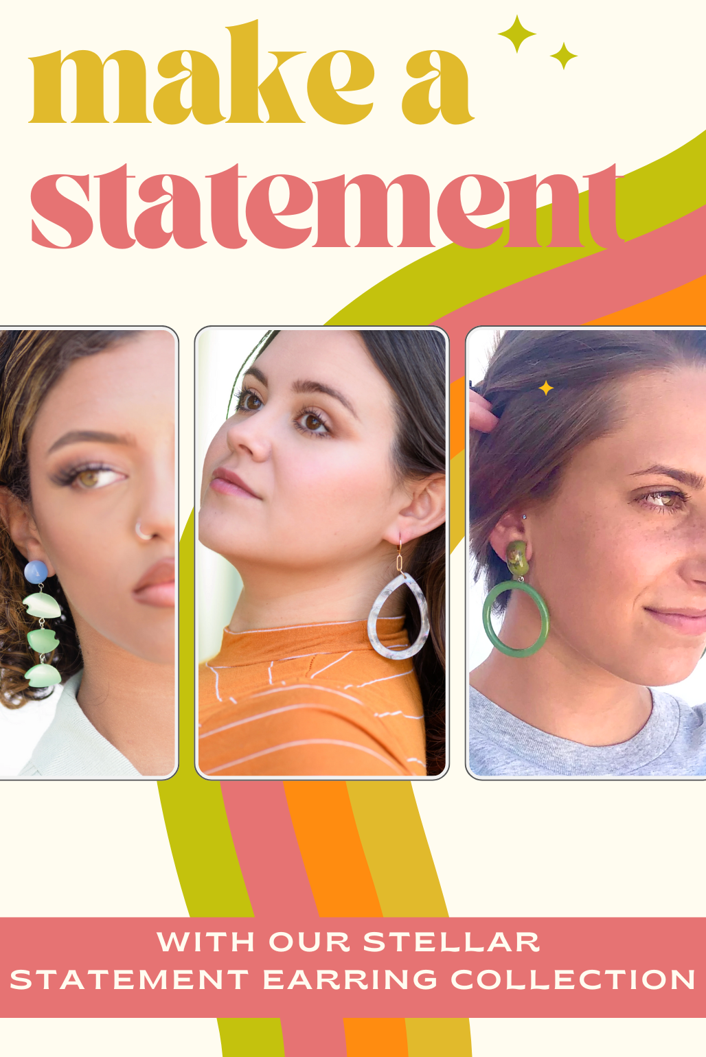 Our Megan Hoop Earrings are the perfect pick heading into Fall! With their retro 80's vibes and their detailed marbling, each hoop is reminiscent of lowing marble or a semi-precious stone, only super light-weight and set with surgical steel.