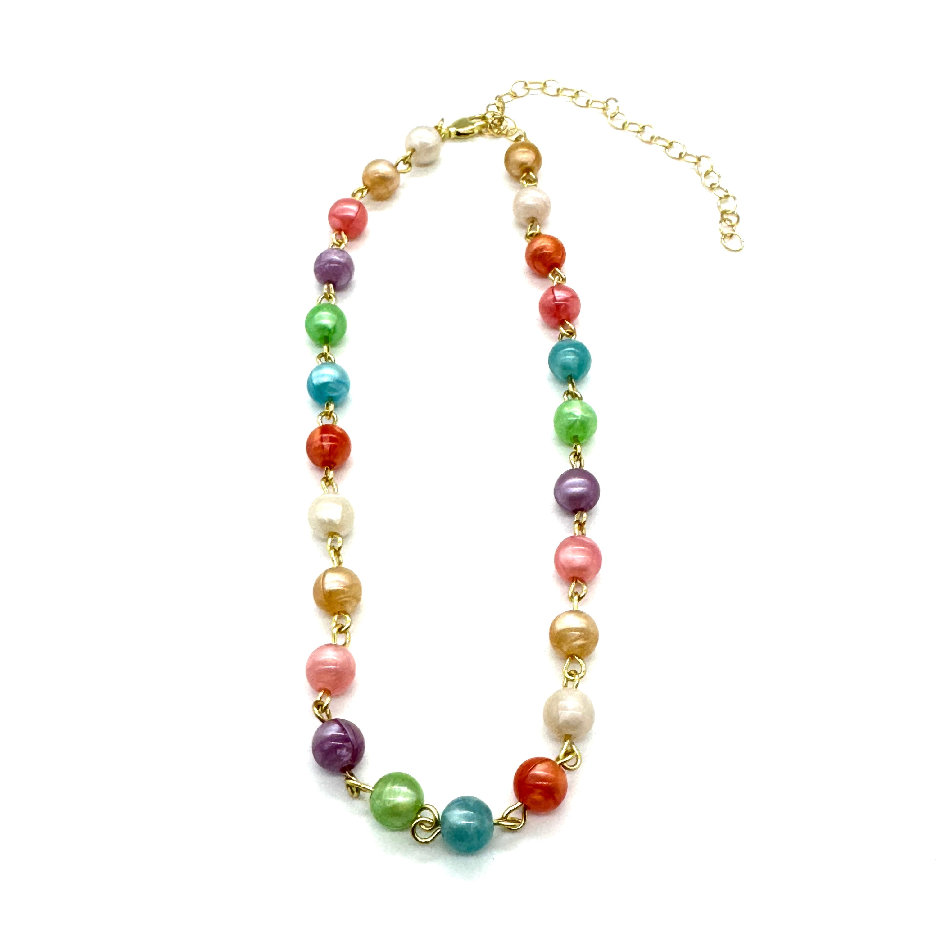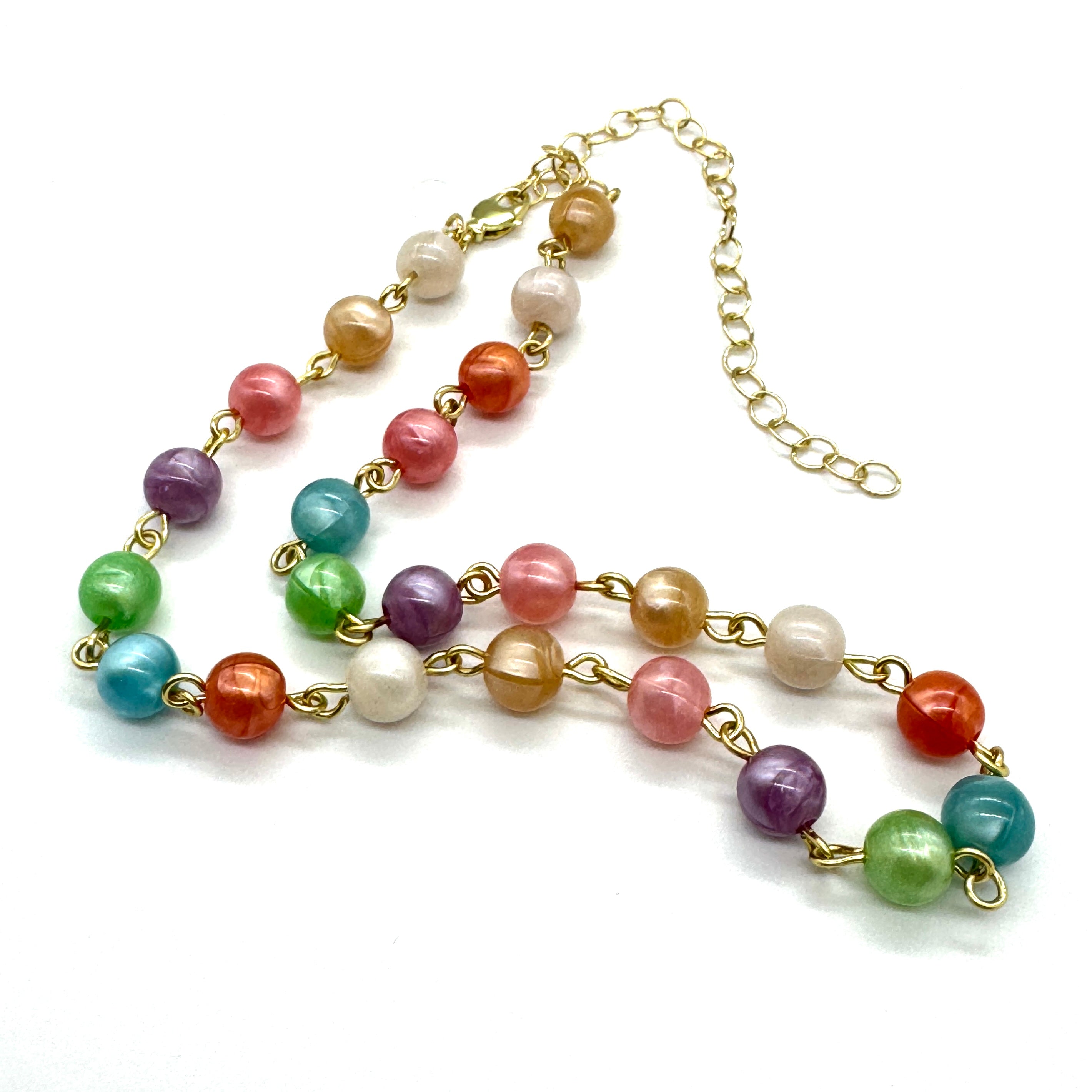 Like a celebration you can wear, the Confetti Crush Amelia Necklace is bursting with color and charm. Made with rare vintage beads from the 1980s—originally produced in West Germany—each bead has a dreamy “aura glow” finish that catches the light like magic. It’s a statement piece, a layering favorite, and a true collector’s gem.