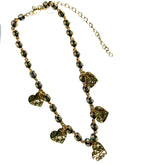 The Midnight Gilded Hearts Collection is a glamorous nod to vintage romance with a dash of disco sparkle. Each piece is handmade with vintage Lucite beads — clear over a jet-black core — linked together to catch the light with a smoky glow. Glittering gold heart charms dangle throughout, adding just the right amount of drama and shine. Lightweight yet statement-making, this collection was made for after-dark adventures, date nights, and anytime you want your jewelry to do the talking.