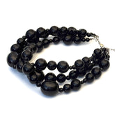 Crafted with authentic vintage Lucite beads, this necklace layers three strands of high-shine black beads in graduated sizes. The result is a look that’s powerful yet wearable — bold enough for evening, but chic enough for everyday.