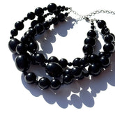 3 strands of oversized glossy black beads