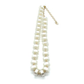 The Articulated Lustre’ Pearl Amelia Necklace is a modern take on timeless pearls. Made with vintage Japanese resin pearls in a chunky rondelle shape, each bead is linked together to create an articulated strand that moves like vertebrae. The result? A necklace that feels classic yet fresh, with luminous shimmer and sculptural texture.