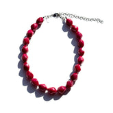 Here's a necklace that’s bold, juicy, and full of retro charm! The Cranberry Marbled Nugget Marco Necklace is chunky, colorful, and designed to make a statement.