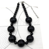 Meet me at midnight...and bring this amazing necklace!  Shiny black beads in different sizes--such visual interest! This Marco Necklace will compliment anything from a cocktail dress to jeans and a classic white tee. Marco necklaces are always in style: