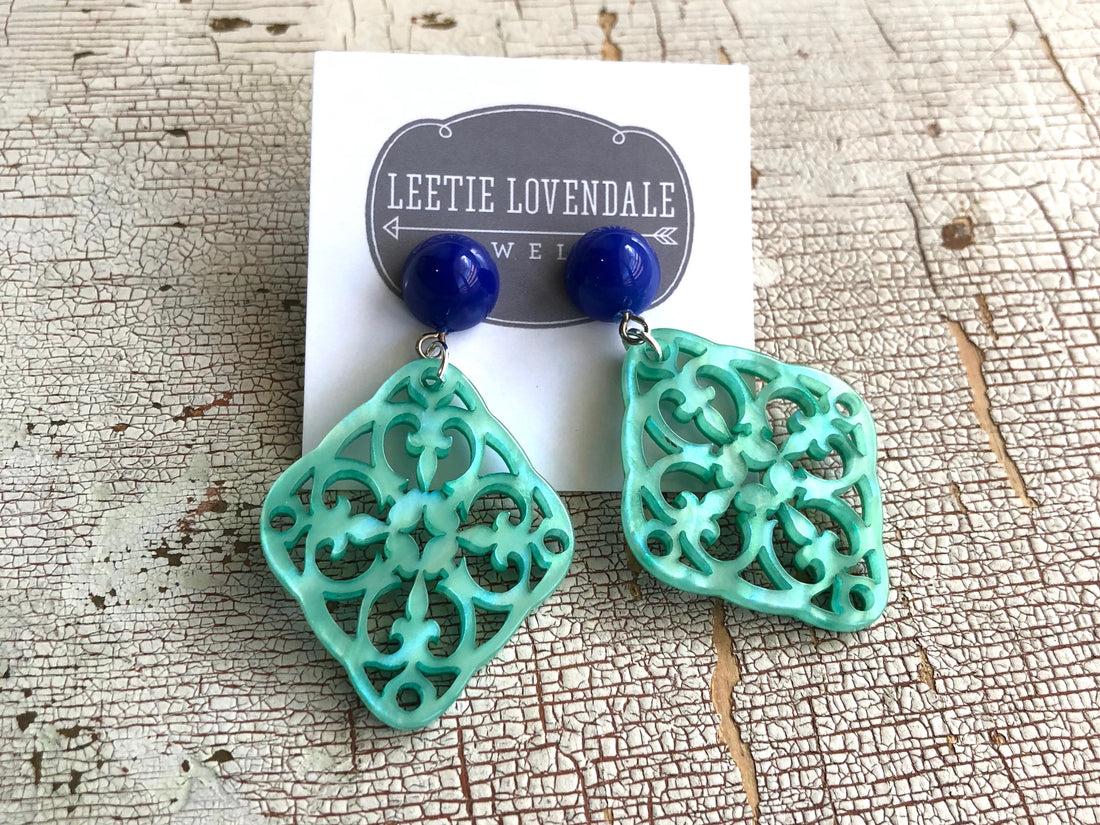 Fuchsia & Aqua Bohemian Lace Medallion EarringsFuchsia & Aqua Bohemian Lace Medallion Earrings