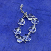 Meet the Lucite Glacier Betsy Bracelet: a cool, crystalline beauty crafted from rare vintage clear lucite beads that look like hand-carved ice. These sculptural nuggets were produced in the late 20th century and held in factory archives for decades before landing in our studio. Now they’re reimagined into a modern, easy-to-wear statement.