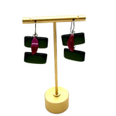 Retro meets radiant in these statement drops from our Glow Collection. Made with genuine 1960’s moonglow lucite, each earring features deep forest green rectangles paired with a bold cranberry marquise accent. The contrast is striking yet timeless, bringing a pop of color and vintage charm to any outfit. Lightweight and handmade, they’re as easy to wear as they are to love.