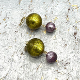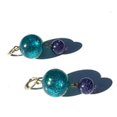 Meet the Cosmic Italia Drop Earrings — bold, sparkling, and irresistibly fun. Each pair features highly collectible Italian glitter resin beads from vintage archives, paired with a floating double-sphere silhouette that catches light with every turn. Lightweight yet full of presence, these earrings bring a little cosmic magic to any outfit.