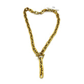This stunning necklace boasts a chunky 18k gold stainless chain link design and a toggle clasp at its center, making it the perfect statement accessory.