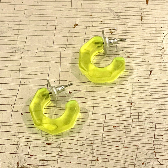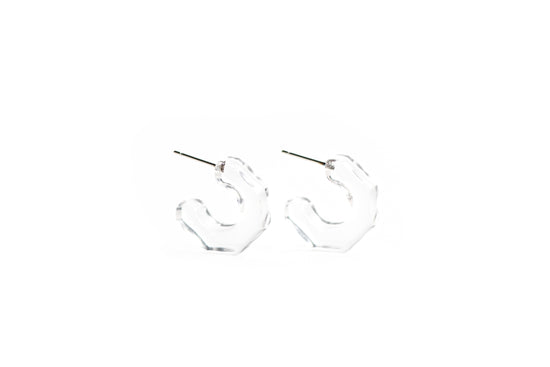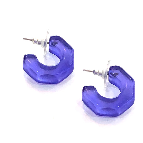 The Gracie Hoop Earring is a chunky but small lobe-hugging style in a faceted octagon shape. Available in clear & coming soon in loads of other colors. The Gracie hoops measure about 7/8" of an inch in diameter.