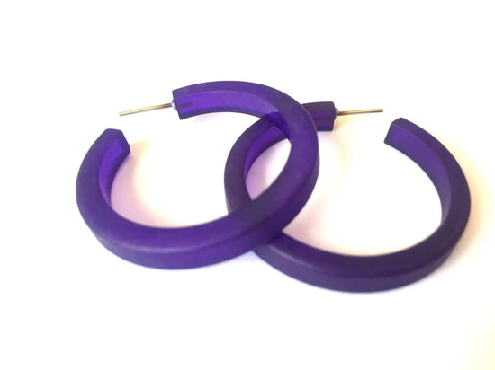 Amethyst Purple Frosted Classic Lucite Hoop Earrings- Regular price