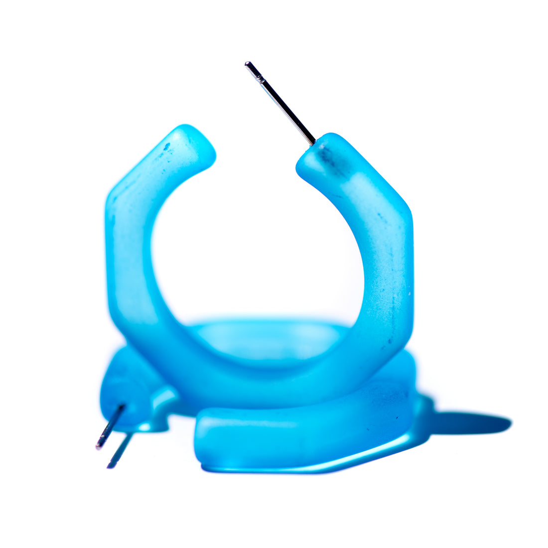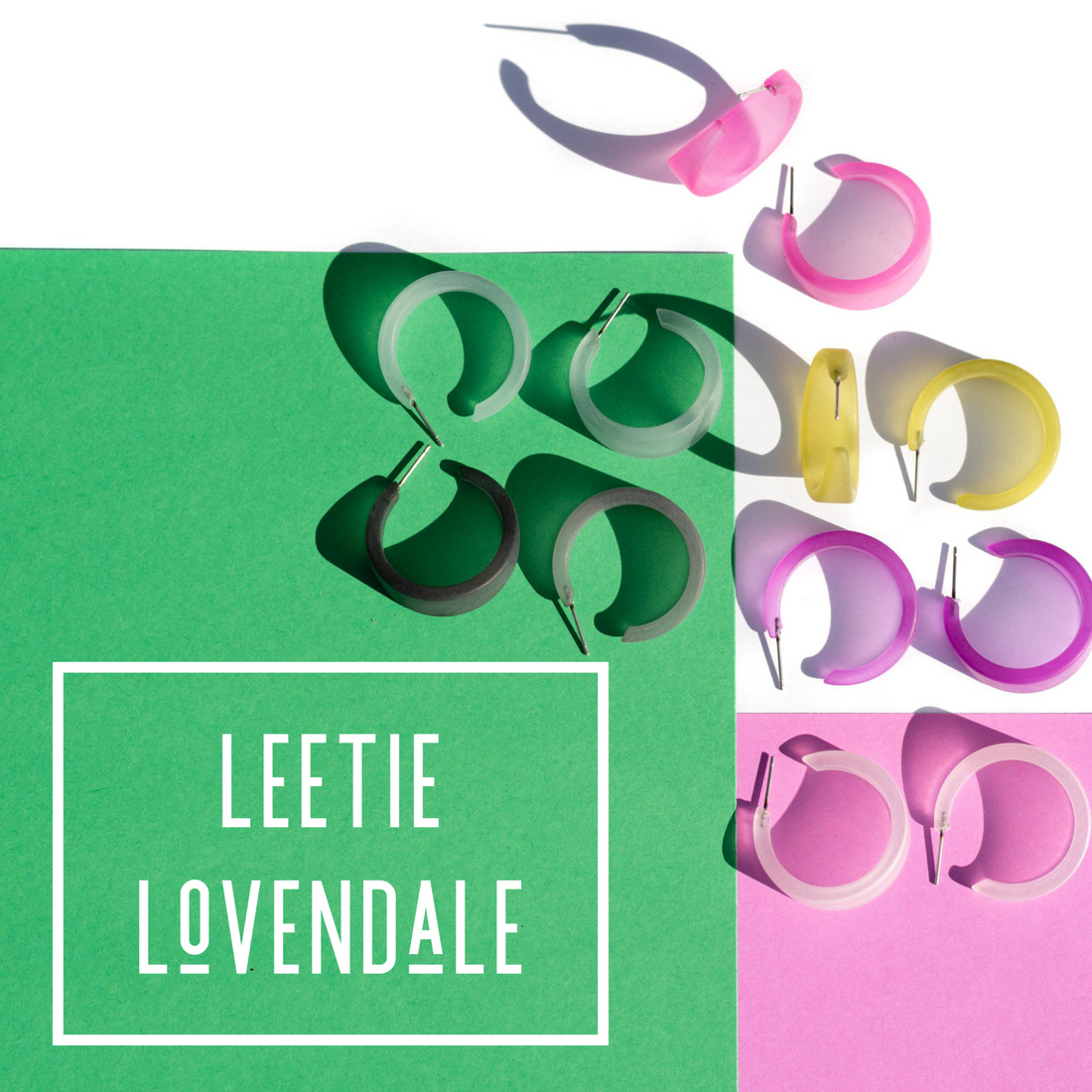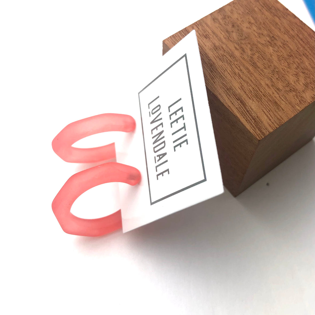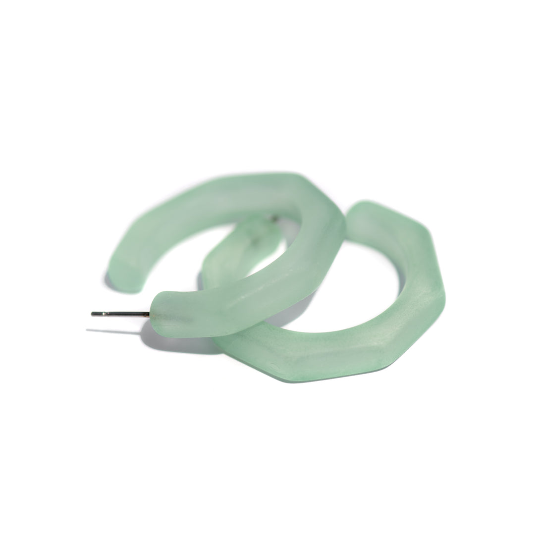 The Kay Hoop Earring is a faceted or Octagon shape, available in loads of colors and the collection is only growing. Made currently with vintage stock, these light-weight lucite pieces are hand set with surgical steel posts.