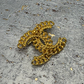 Bold, sculptural, and beautifully 90s. The Chainwork Statement Brooch is a true vintage deadstock find from the era of power dressing and mall-store glamour. Featuring intertwined chain-textured links in a bright gold-tone finish, this collectible pin adds instant attitude and shine to jackets, sweaters, scarves, bags, or hats.
