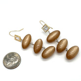 The Champagne Facet & Glow Earrings feature stacked 1960s vintage moonglow lucite beads in a warm, luminous champagne tone with a soft, pearly glow. Elegant and understated, this neutral palette lets the sculptural shape and vintage luster take center stage.
