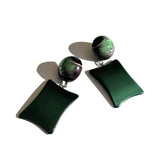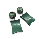 A luxe take on retro green ✨ The Evergreen Luxe Earrings feature moonglow lucite drops in deep evergreen, paired with marbled button studs made by Best Plastics in the 1960s. A statement style that blends midcentury elegance with natural tones.
