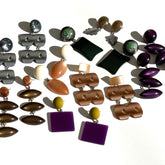 A: Many of the true vintage plastic components we use were found in Pawtucket, Rhode Island & were made by a company called Best Plastics who make jewelry findings & parts from 1963 through 1982. We cleaned out their warehouse of 40,000 lbs of these parts back in 2004. We have been in the jewelry industry for many years now, and have deep rooted connections to other designers & component manufacturers, so from time to time we still unearth real vintage goods. We also do use new & contemporary materials, however we feel strongly that we know how & where they were made & by whom, making our lines ethically sourced & sustainable. At this point in time, 95% of our offerings are made with vintage goods.