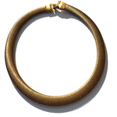 Strike a pose in pure 1970s style with this Vintage Cobra Brass Necklace — a bold and sculptural statement piece from the disco decade. Crafted in flexible ribbed brass with a tubular “cobra” design, it hugs the neckline with a chic, collar-like fit.