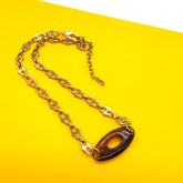 A golden statement with vintage soul. The Tortoise Link Necklace pairs a sculptural, vintage lucite buckle-style pendant with a sleek 18k gold-plated chain. The chain itself is crafted from surgical steel for long-lasting shine and durability — a modern heirloom that won’t tarnish or fade.