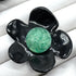 Black Coco Flower Cocktail Ring — Carved Jade Green Mosaic Center