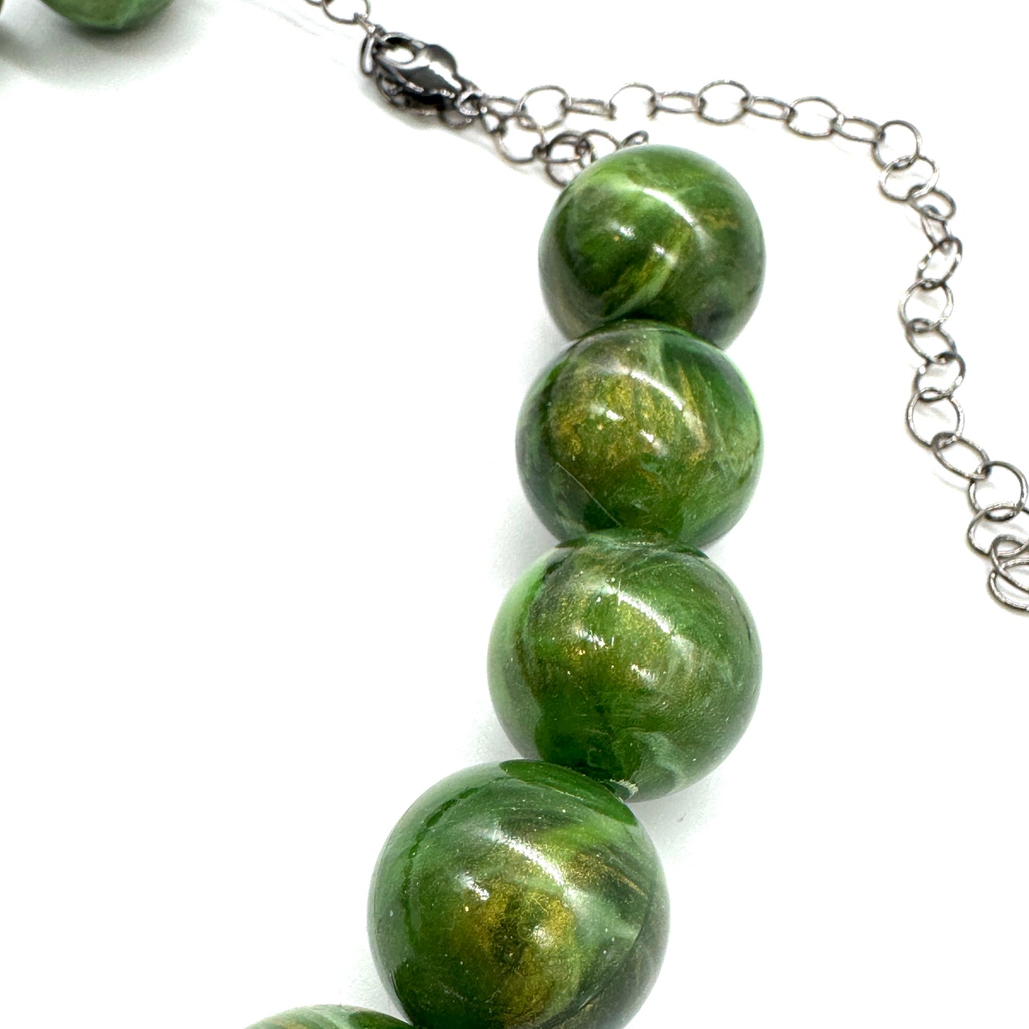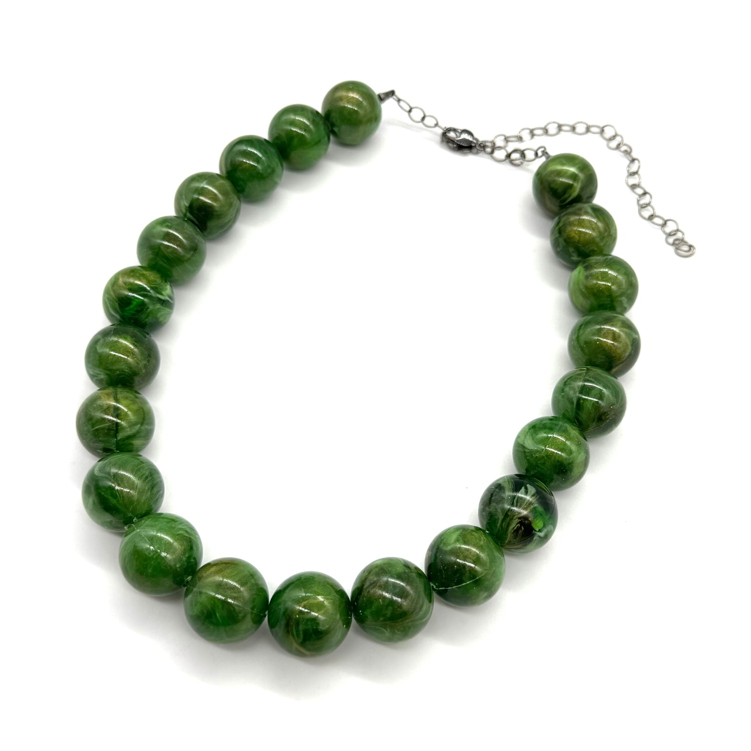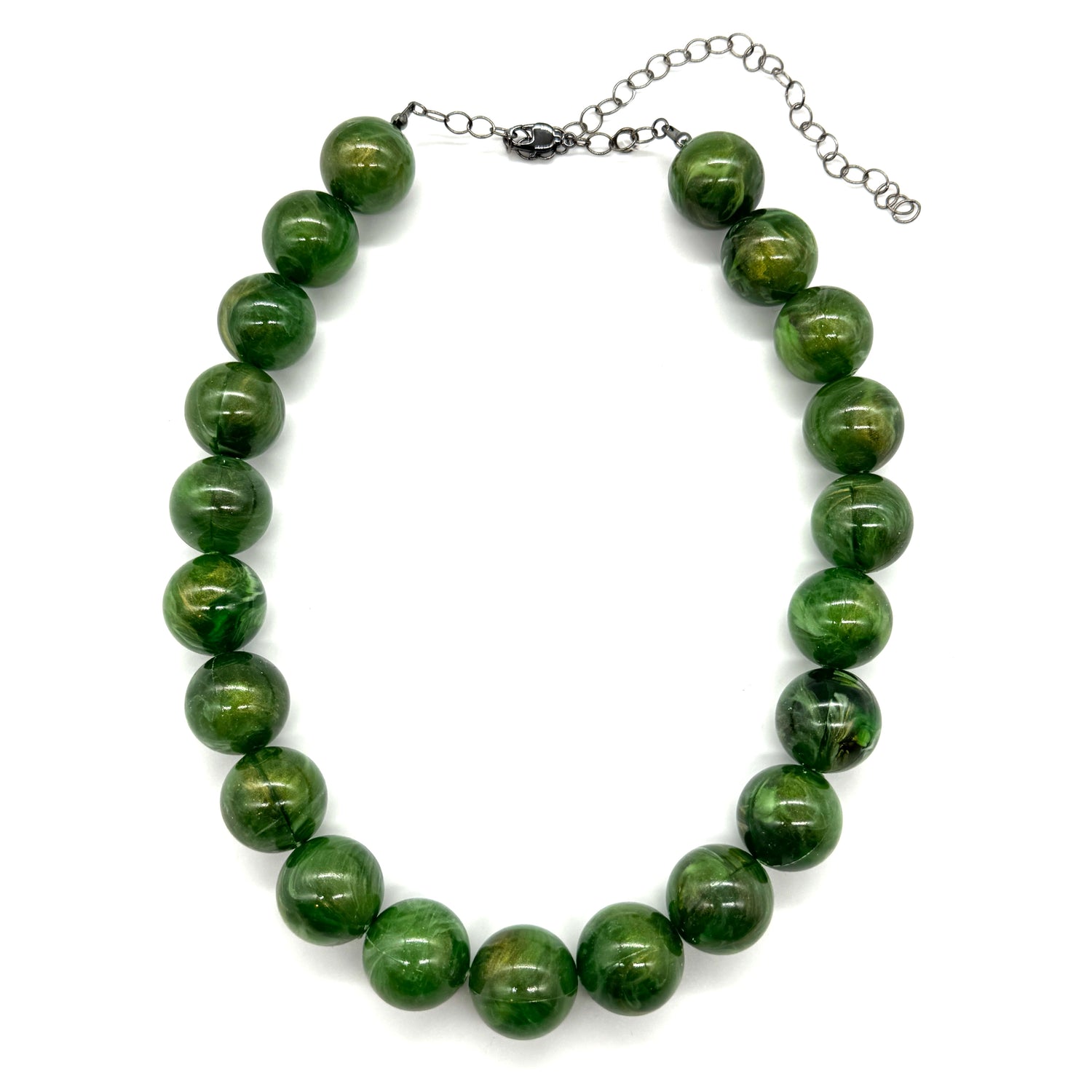 This single beaded style is known as the Marco necklace. Each necklace measures about 16" + a 6" extender. Finished with gun metal colored findings.