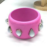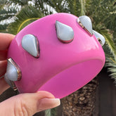 Bright pink resin bangle bracelet featuring 1960's lucite moonglow teardrop stones by Best Plastics.