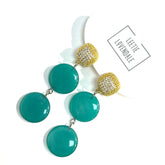 luminous balance of sparkle and glow. The Moonset Triple Pavé Drop Earrings feature a softly domed pavé crystal stud paired with three cascading moonglow drops, creating movement, light, and just the right amount of drama. Classic yet statement-making, they feel equally at home with a crisp button-down or a silk dress at golden hour. Each measures just about 3" in total length.