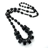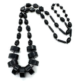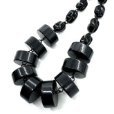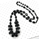 Handmade in the USA using genuine vintage lucite, this rope-length necklace is lightweight despite its bold look. Wear it long, double it up, or layer it with other strands for a striking statement. With its all-black palette, this piece pairs effortlessly with everything from everyday denim to evening wear.