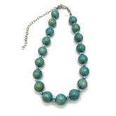 Each bead carries natural variation in tone and surface, giving the piece its signature depth and character—like something shaped by time and tide.