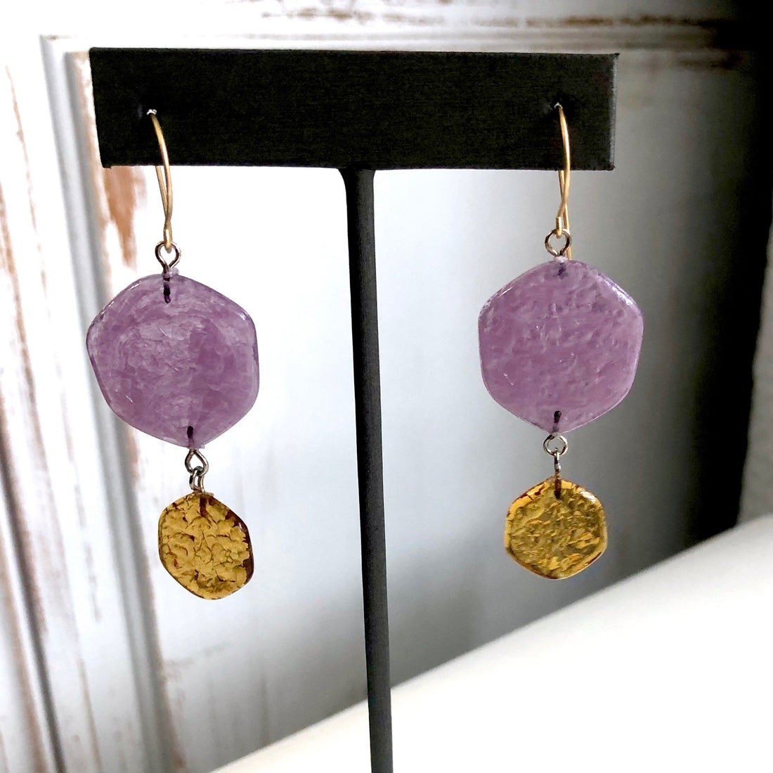 Marbled Lavender Ice Chip Gun Metal Hoop EarringsMarbled Lavender Ice Chip Gun Metal Hoop Earrings