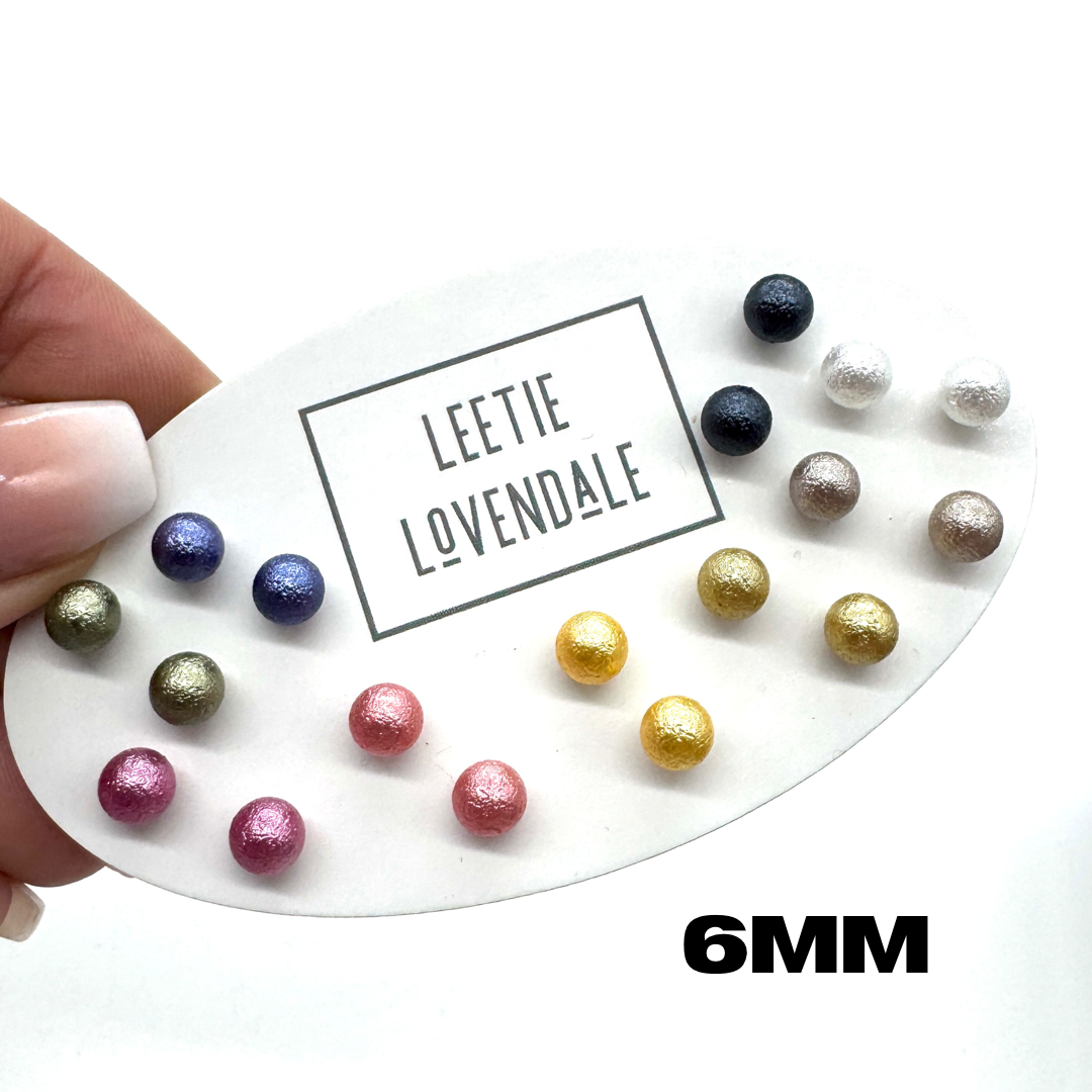 Add some quirky fun to your accessories with our Candy Paper Earrings Set! Each set includes colorful ball stud earrings in various sizes (6mm to 8mm and 12mm) with epic palette options. Sage greens, golden yellow, slate blue, and more add a playful pop of color to any outfit. Made with hand-dyed vintage lucite parts from the US in the 1960's - early 80's, these earrings are lightweight and feature surgical steel earring posts and sturdy surgical steel/acrylic backings. They're a fun and unique addition to any jewelry collection!