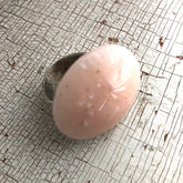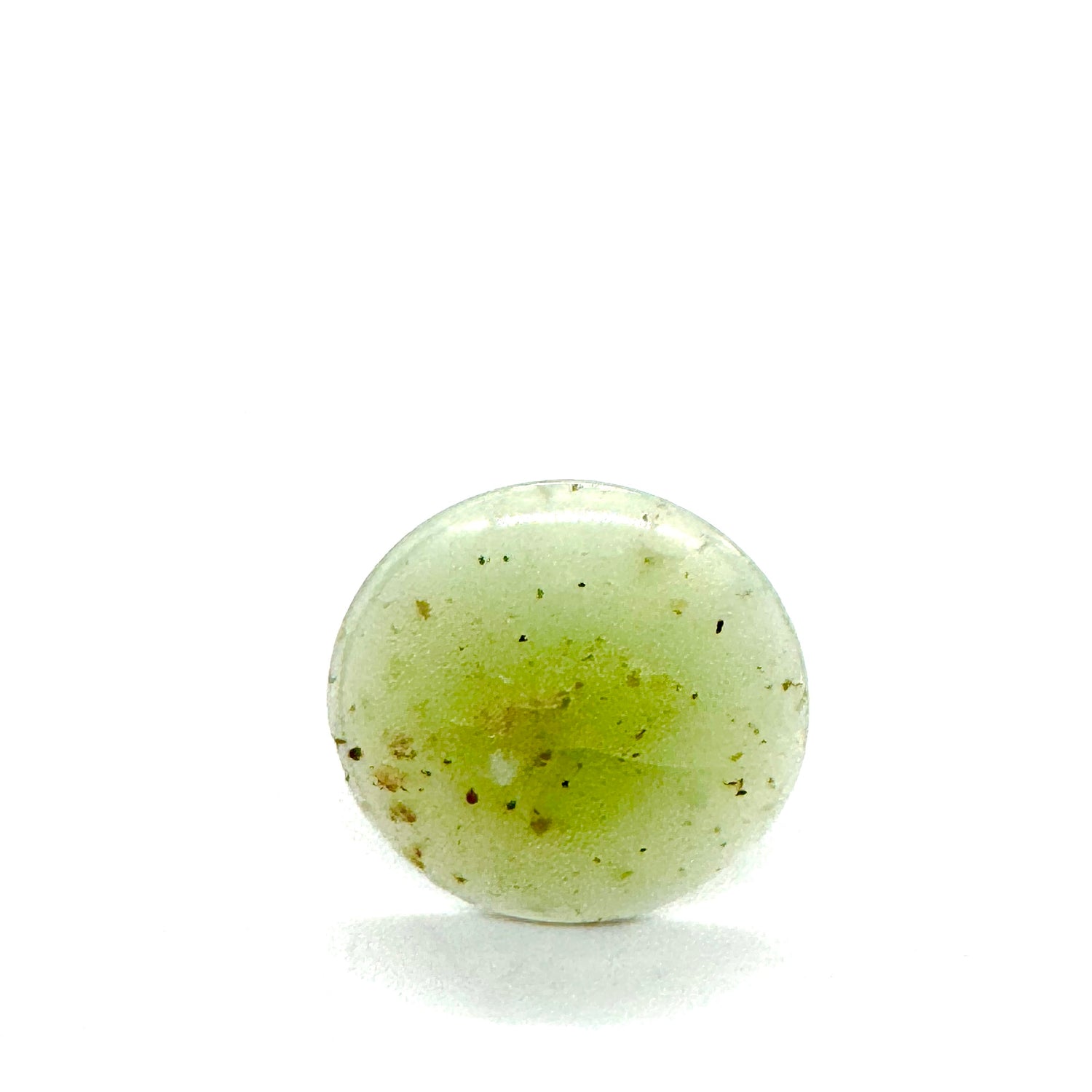 Meet the Speckled Lucite Granite Ring — a soft, speckled stunner made from vintage lucite and finished in a glossy, gemstone-like shine. This domed "stone" is a unique mint green with subtle flecks, reminiscent of polished granite or a seafoam terrazzo.