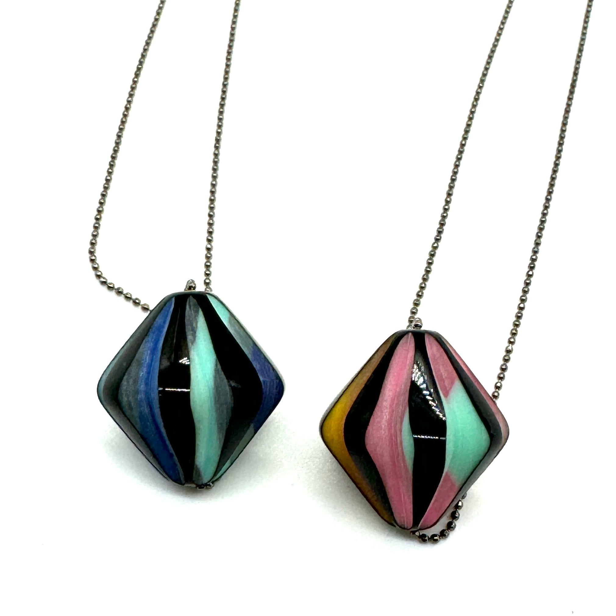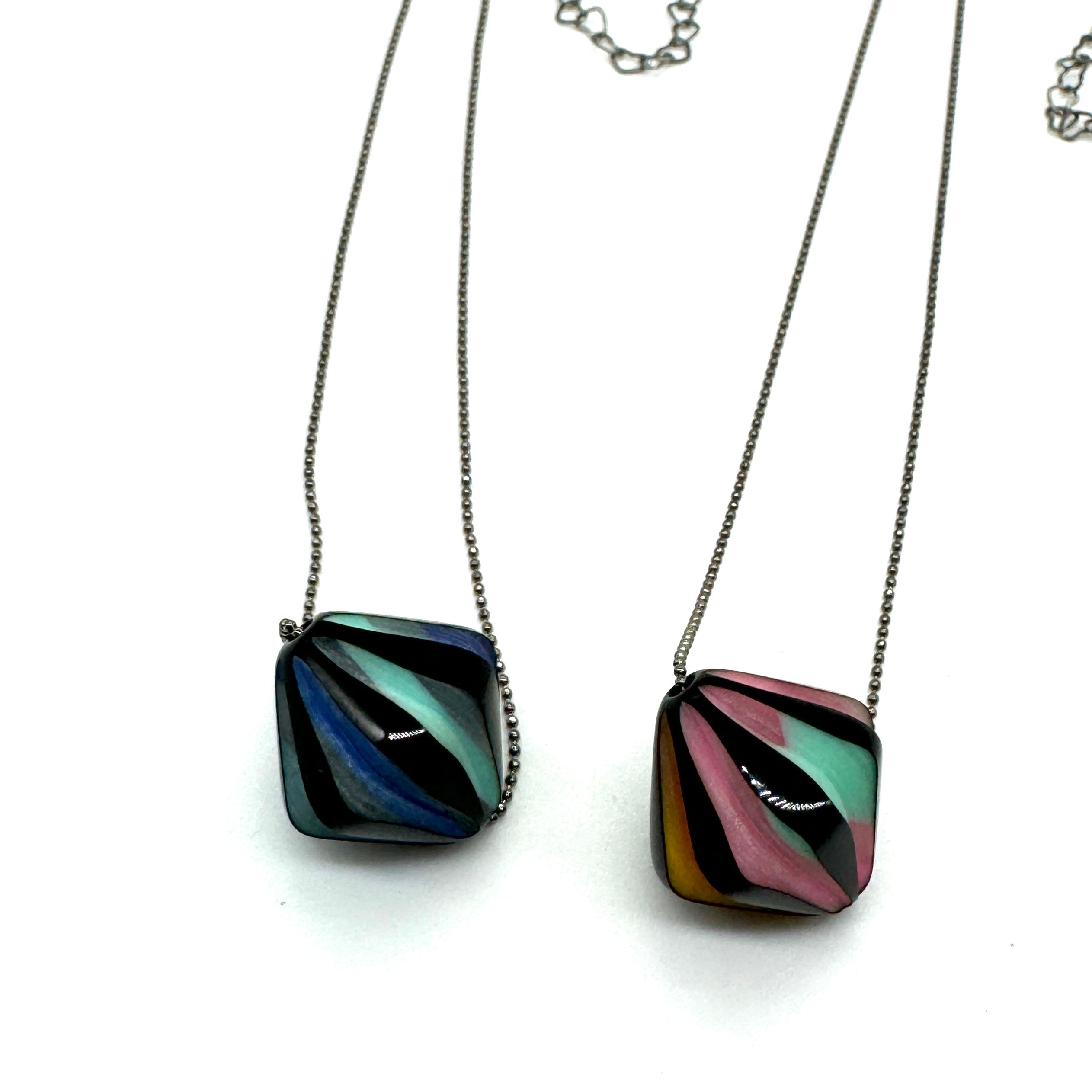 Experience the intricate beauty and vibrant colors of our Carved Resin Necklace. Each piece is delicately crafted, offering two unique options in Ocean Blues and Rainbow Ice Cream. This necklace measure 26in + 5 inch extender