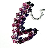 Meet the Amethyst Faceted Amelia Necklace — a luminous strand made from rare vintage lucite beads in a light amethyst hue. Each bead is hand-linked to catch the light, showing off its angular faceting and crystal-like shine.