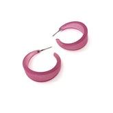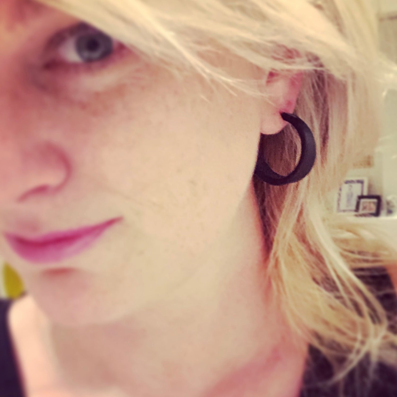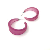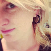 Hoop earrings in the larger size of the Marilyn style hoop, a modern style hoop with a frosted finish. The Marilyn Hoop is a tapering or waning shape that starts & ends at a point and widens in the middle. The large version of the Marilyn Hoop measures 1.25" or 30mm in diameter and 12mm in width. The model is wearing the larger sized Marilyn Hoop in the Frosted Black color to give you an idea of the size and scale & what it will look like when you rock them!