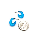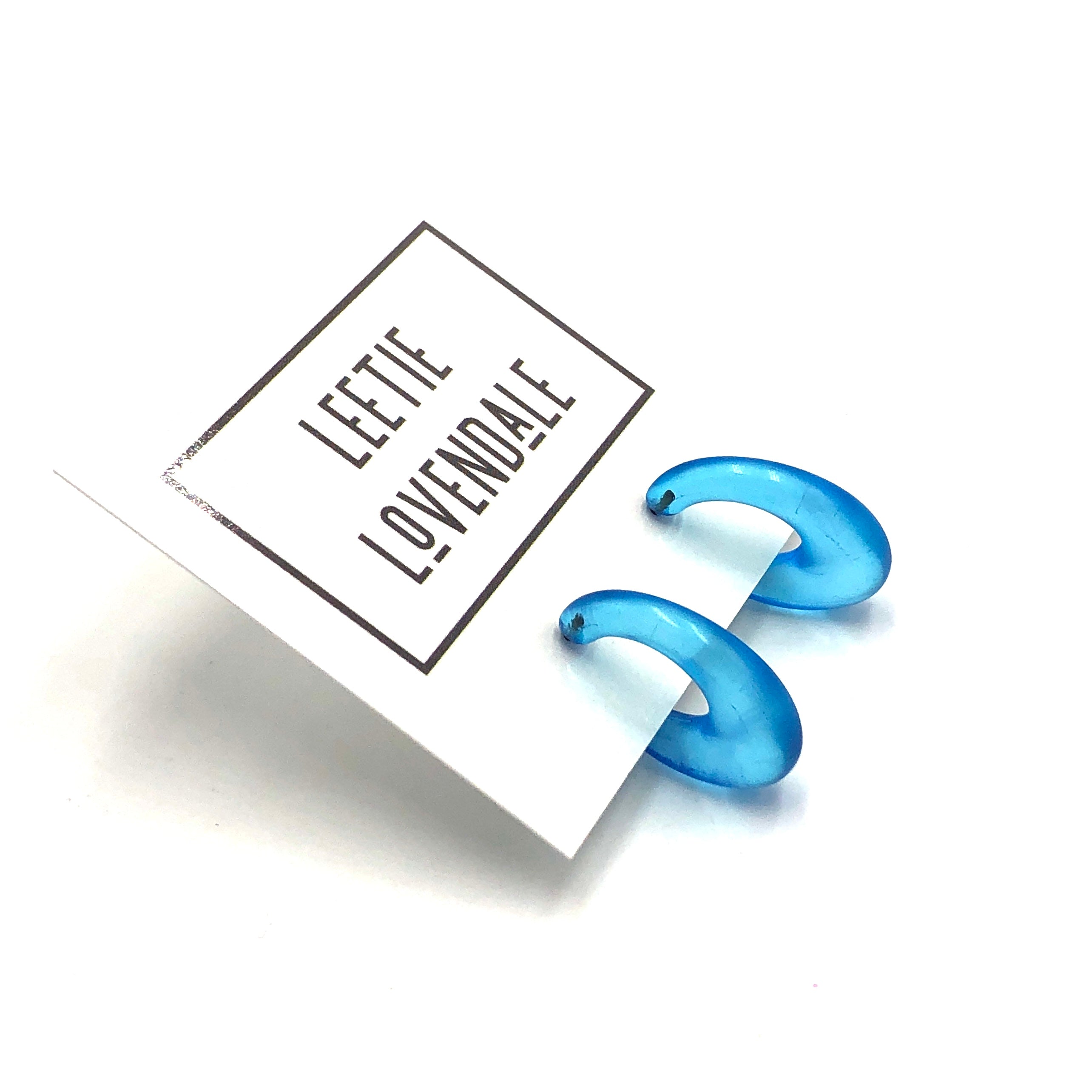 Frisco Hoop Earrings in a perfect narrow oval shape. Made with vintage lucite, each is just under 1" long or measures 23mm in length by 15mm in width. Super retro, organic shape, these are a light-weight earring set by hand with surgical steel. We unearthed these vintage plastics in Europe & finish them off in our AZ studio.