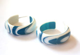 Marbled lucite hoop earrings measuring just about 1.25" or 29mm in diameter and 9mm in width. Each earring will vary in design as the agate pattern shows the varied plastic when it was cut from its drawn cane when the components were made. Check out the last pic where you can see the look & feel of this style on a model.