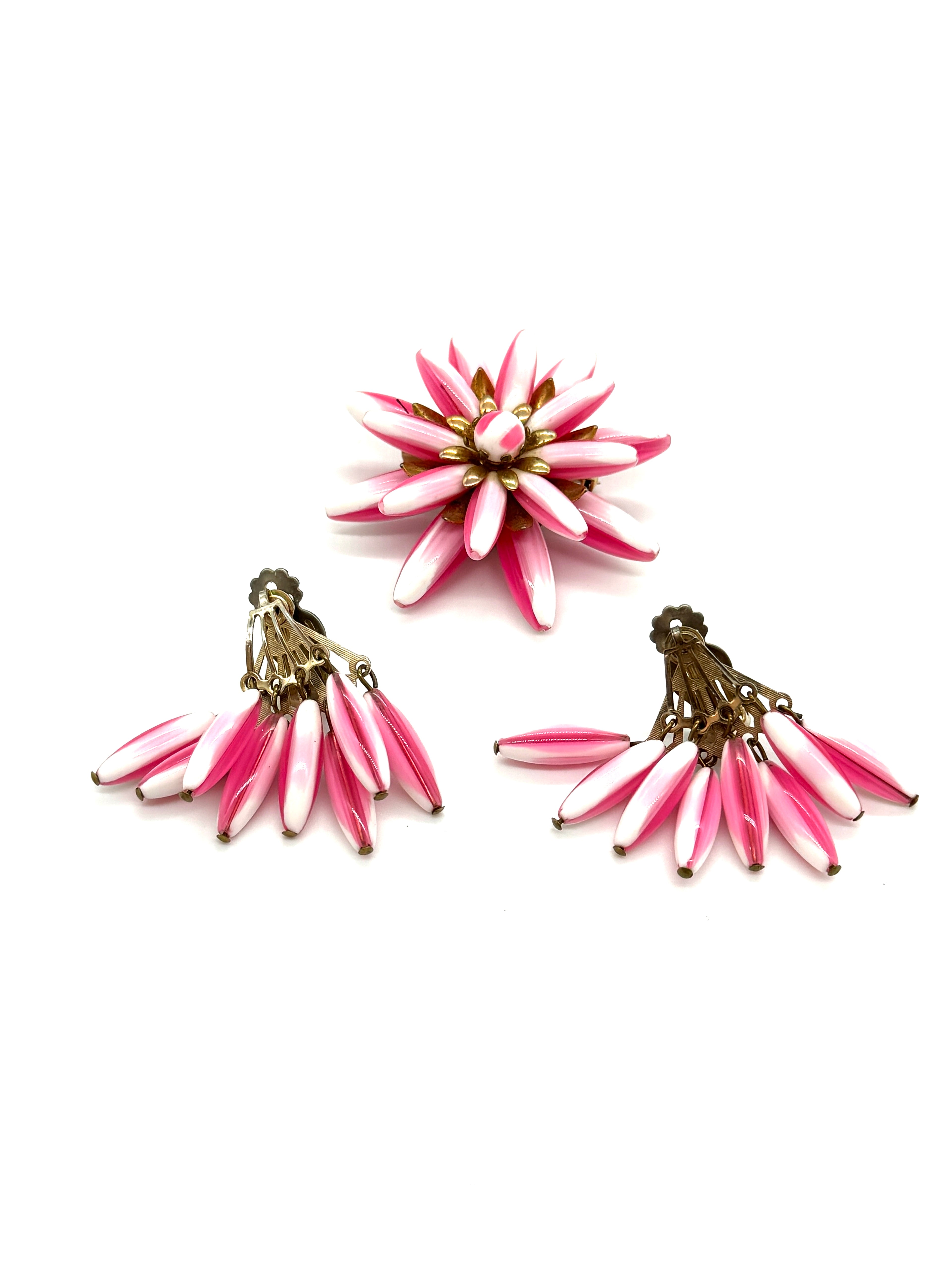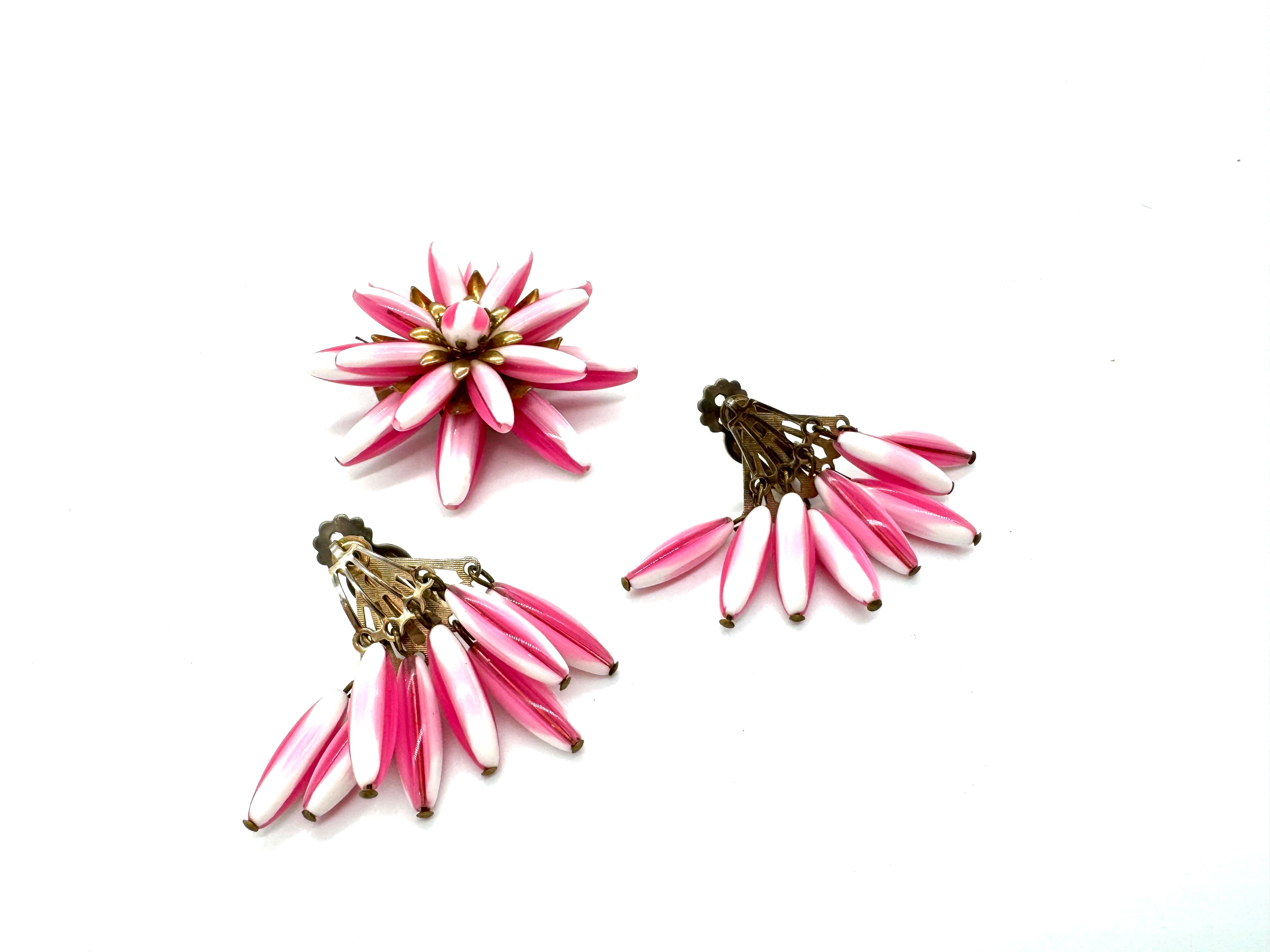 Best Plastics Pink & Moonglow Cluster Pin & Earrings Set - Estate