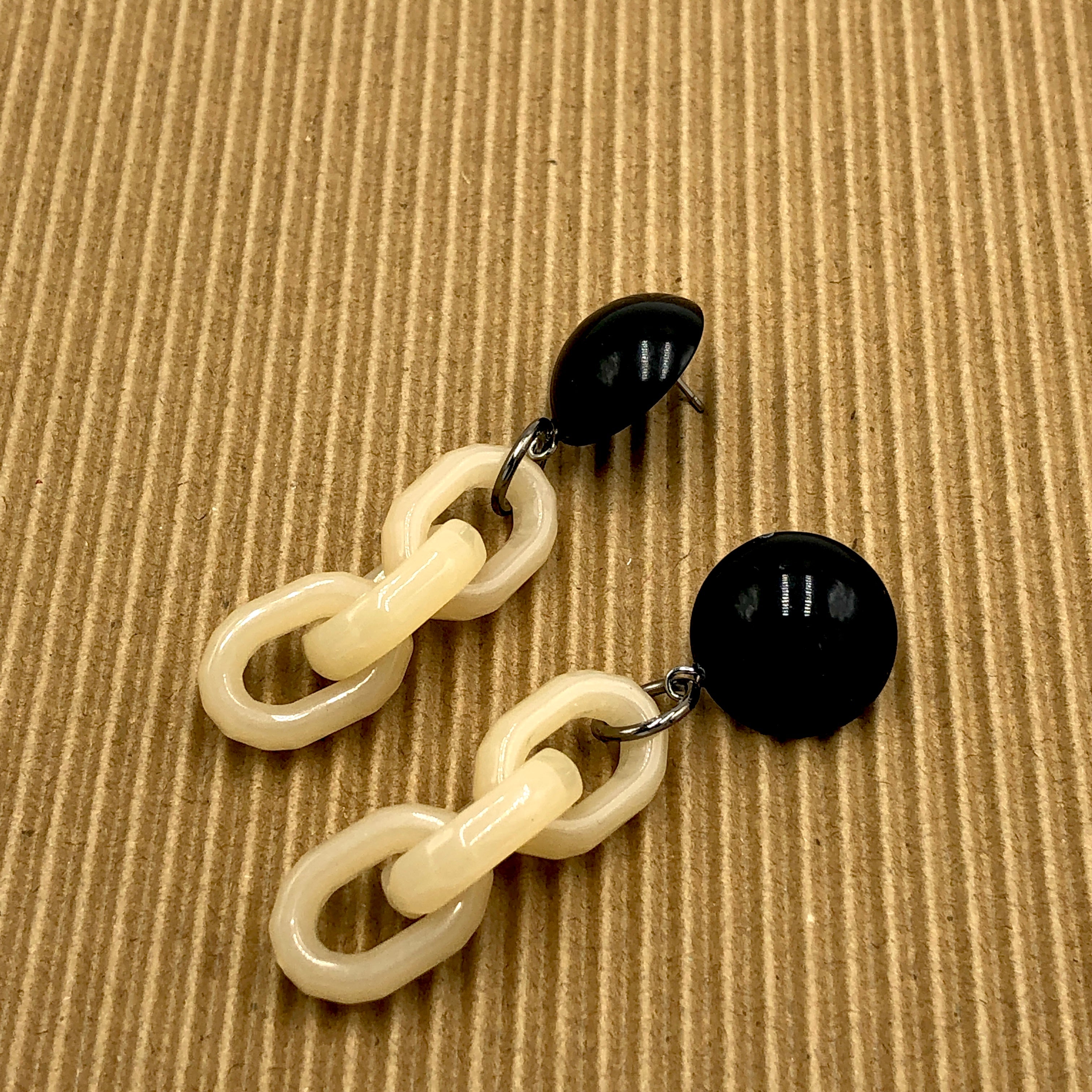 Incredible off white luster chain linked earrings with black vintage studs. Each measures just over 3 inches long & just under 1.25" wide. Super limited.