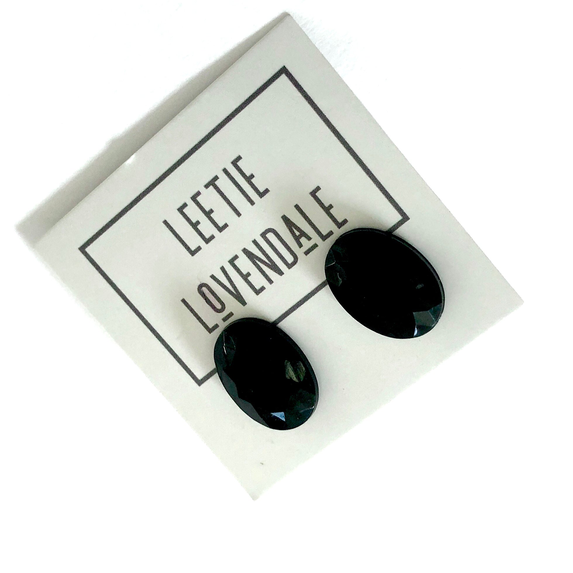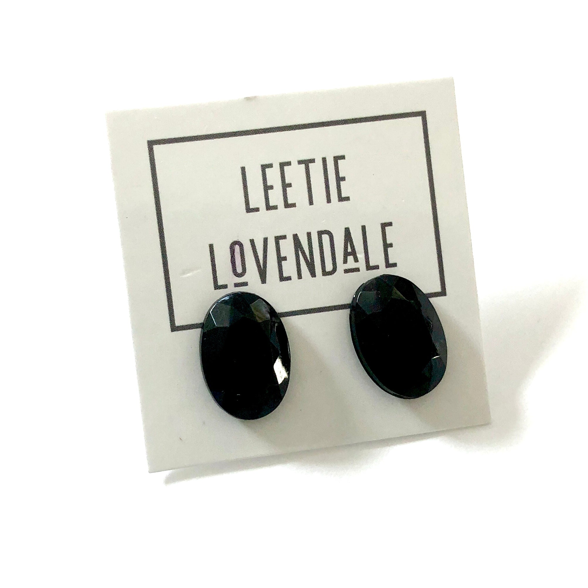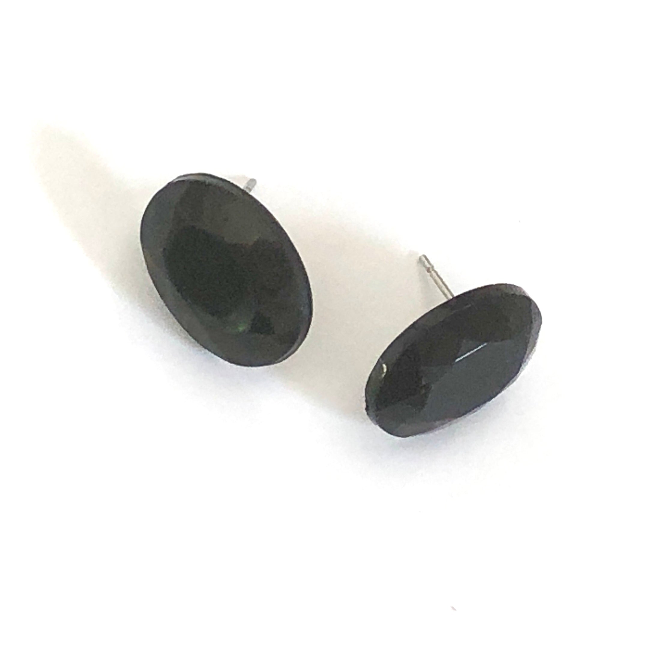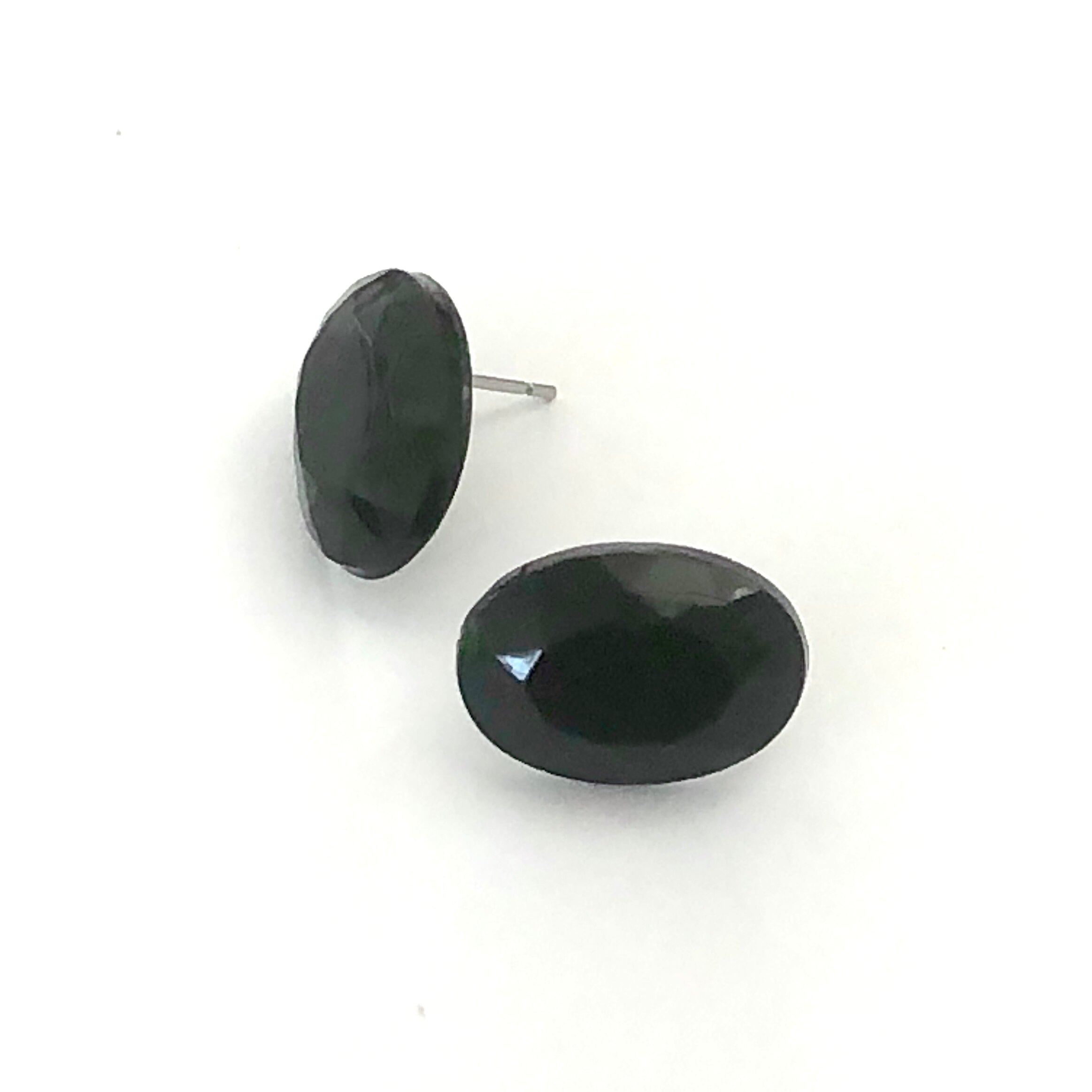 Black faceted stud earrings in a shiny opaque finish & a great domed oval shape. This style is known as the 'Retro Button Studs' and also comes in a button shape. Oval shape measures 13x18mm.