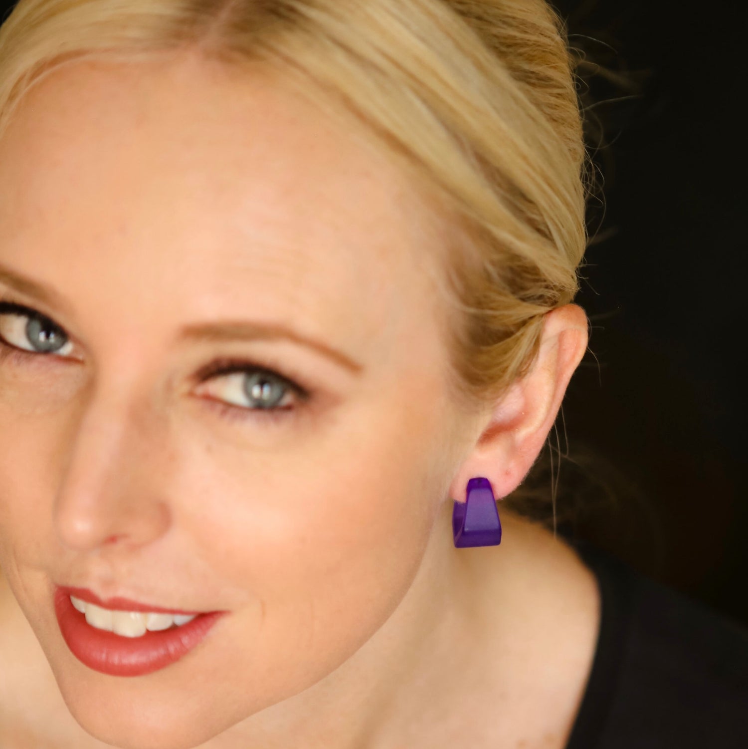 Earrings are made with vintage lucite parts that were made in the US in the 1960's - early 80's. We hand-set them with surgical steel earring posts and they have sturdy surgical steel/acrylic backings on them as well. Light-weight & fun to wear.