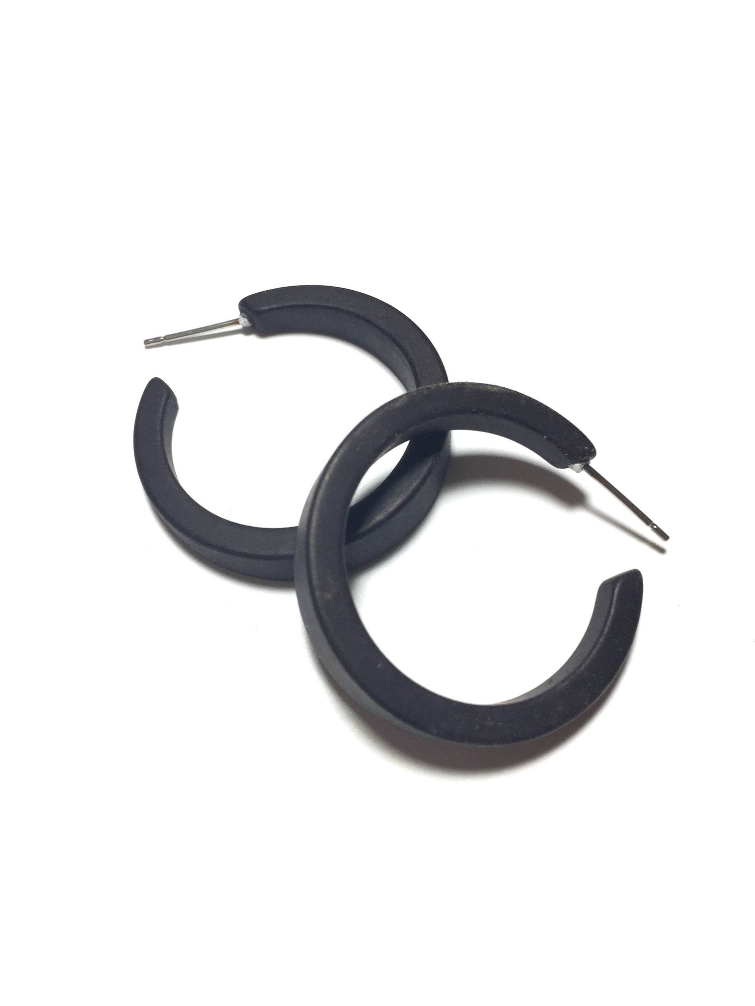Velvet Matte hoop earrings in a great tapered shape known as the Lola Hoop. This is an amazing color & finish. It's a bright blue with a velvet finish. A total pin-up girl's style. Hoops measure approximately 1.25" or 28mm in diameter and 7mm at the widest width, tapering down to about 3mm at the ends.