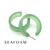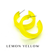 This style is known as the 'Chandler Hoop' and comes mostly in the frosted lucite finish unless otherwise noted. One of our favorite styles & comes in many colors.