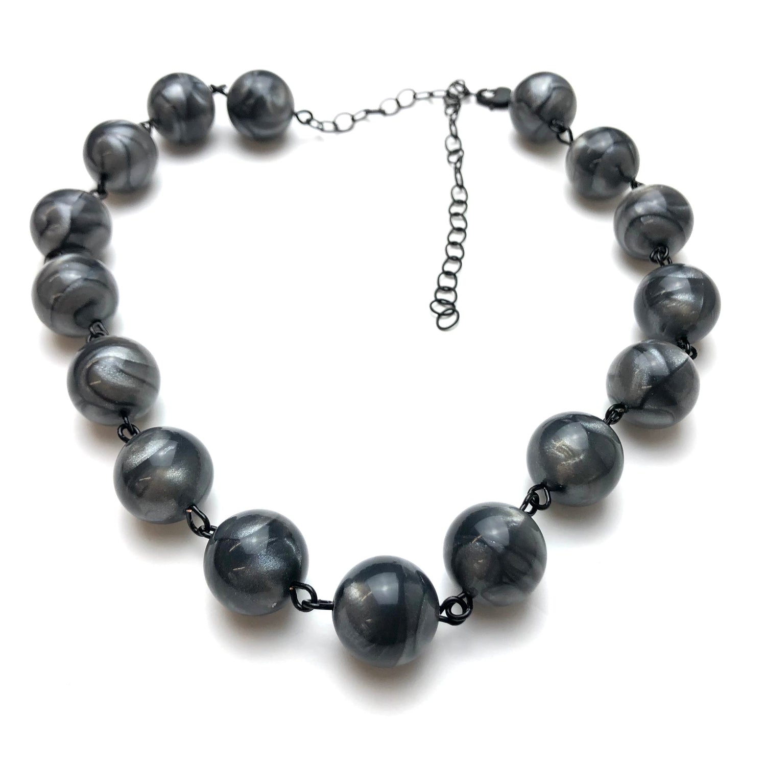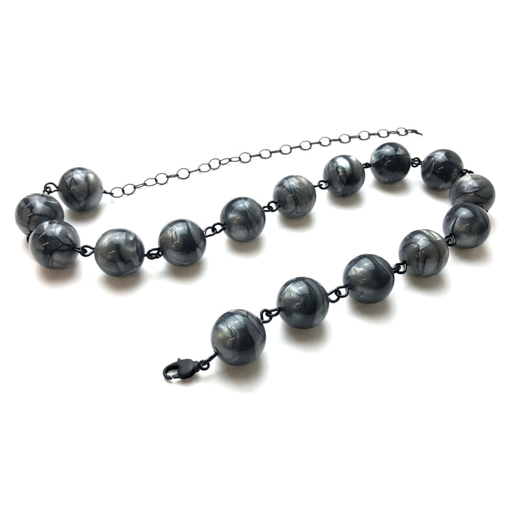 Charcoal Marbled Metallic Glow Beaded Amelia Necklace*