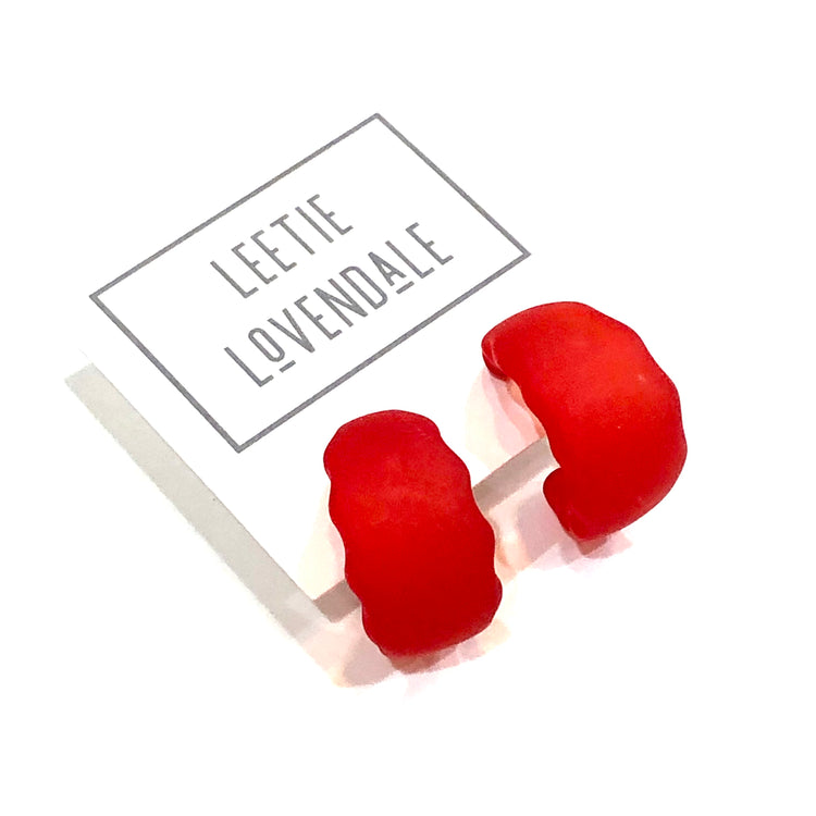 The Ruffle Hoop Earrings are bold, lightweight, and full of personality. Originally made in Germany in the 1990s, these vintage lucite hoops feature a wavy, ruffled edge that sets them apart from classic silhouettes. Each pair is hand-dyed in small batches, resulting in a rainbow of color choices to suit every mood and outfit. Measuring 1" in diameter, they’re the perfect everyday statement size — noticeable yet easy to wear. Finished with surgical steel posts, they’re as comfortable as they are eye-catching.