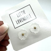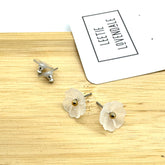 A subtle nod to nature’s most iconic bloom—our Frosted Poppy Studs are graceful, glassy florals that bring a touch of vintage charm to your everyday. Made from clear frosted lucite and finished with a warm golden brass center, these petite poppy-inspired studs are as lightweight as they are lovely.