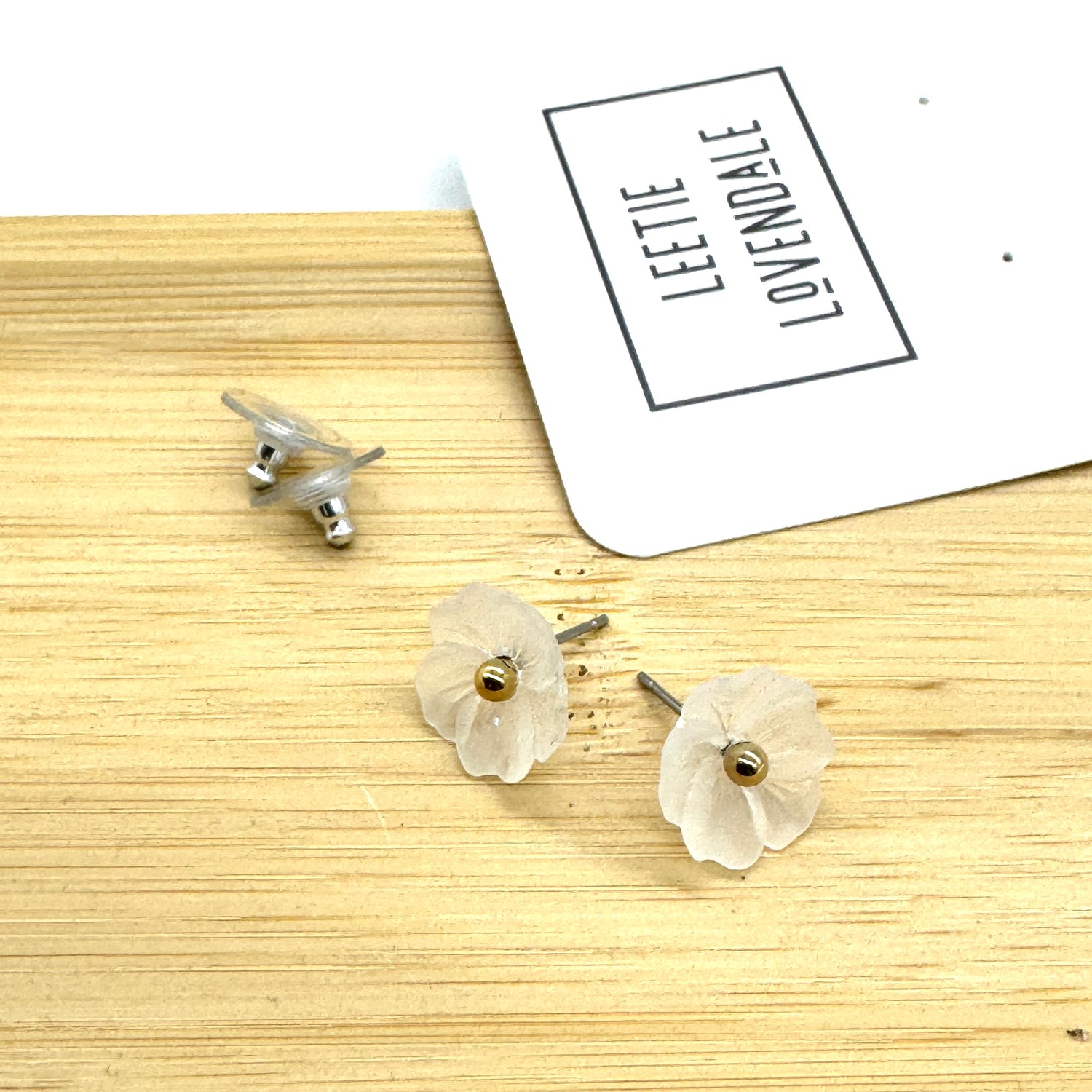 Frosted Poppy Studs – Vintage Lucite & Brass Floral Earrings