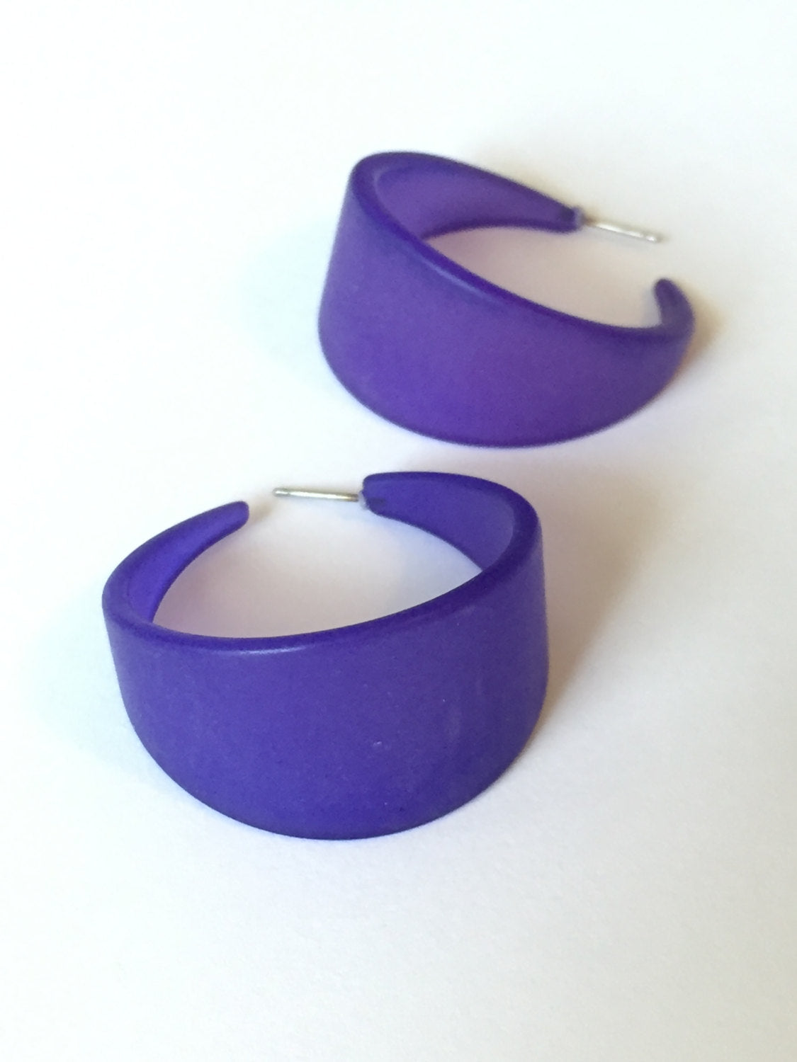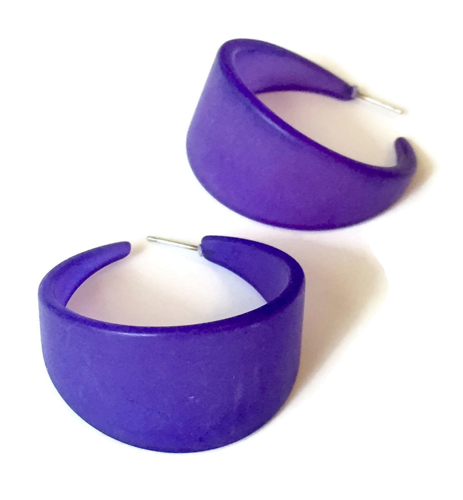 Earrings are made with vintage lucite parts that were made in the US in the 1960's - early 80's. We hand-set them with surgical steel earring posts and they have sturdy surgical steel/acrylic backings on them as well. Light-weight & fun to wear.
