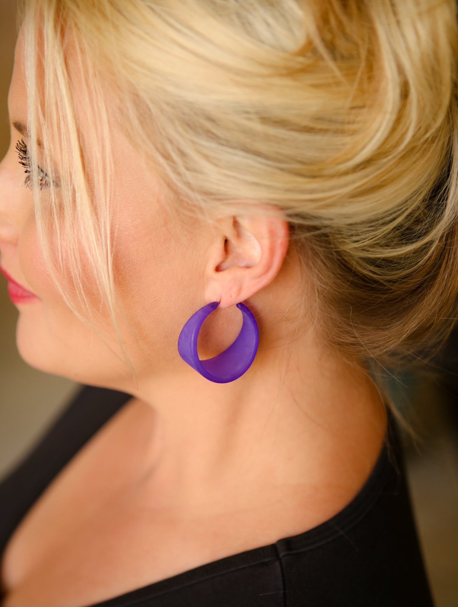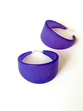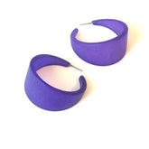 Hoop earrings in a large size & bold style known as the Bettie Hoop. It starts as a tiny dot in the ear and grows into a wide hoop, 20mm at the widest, and then narrows back out toward the end. Measures about 1.5" or 36mm in diameter. This style is super limited.