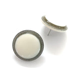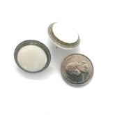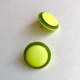 The Sparkle Circle Stud Earrings are the perfect mix of retro & today. Resin & silver glitter mix in these vintage resin beveled disc shaped studs. Each earring measures about 24mm across in size. Geometric stud earrings meet minimalist style and retro meets modern!